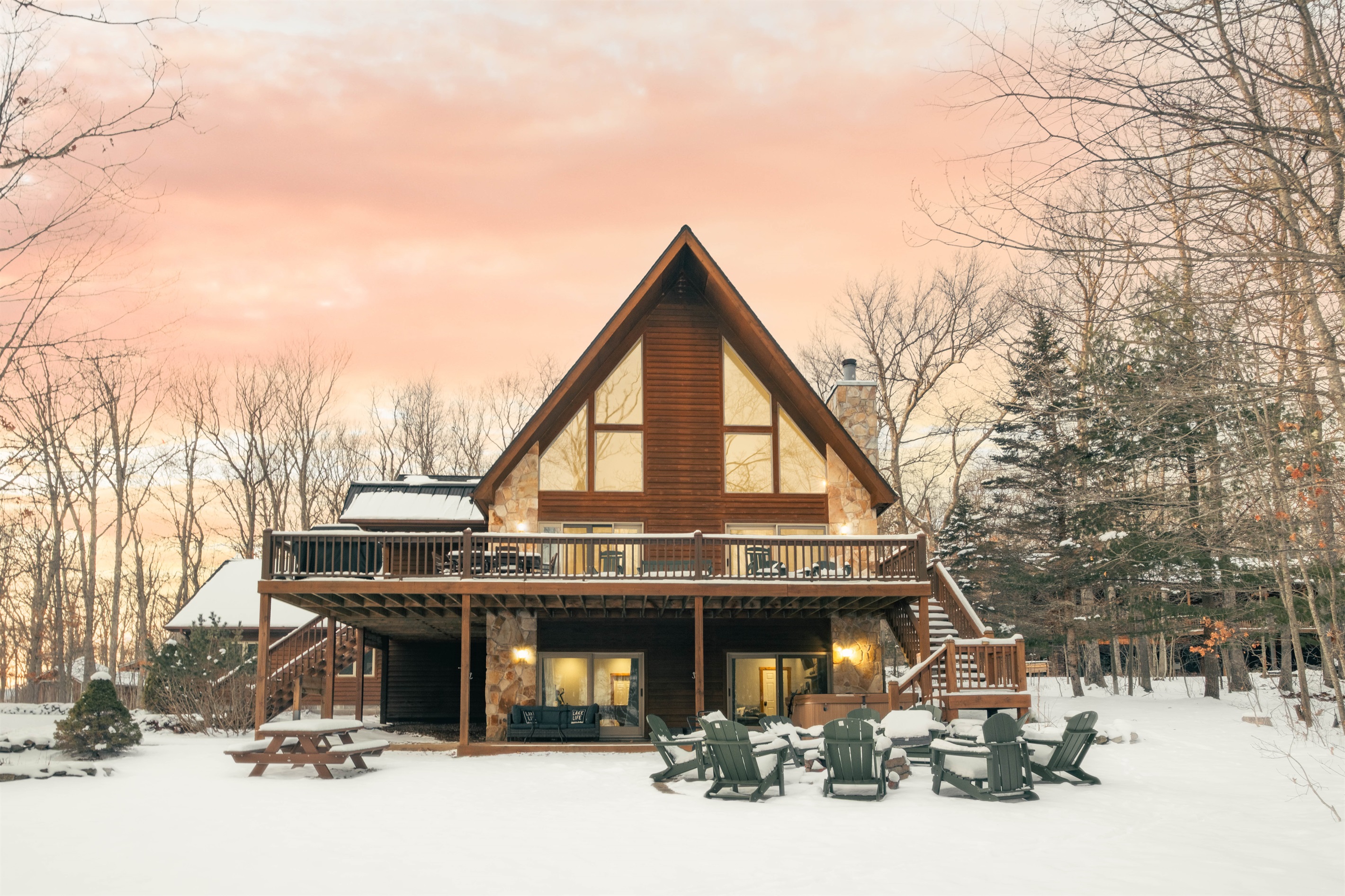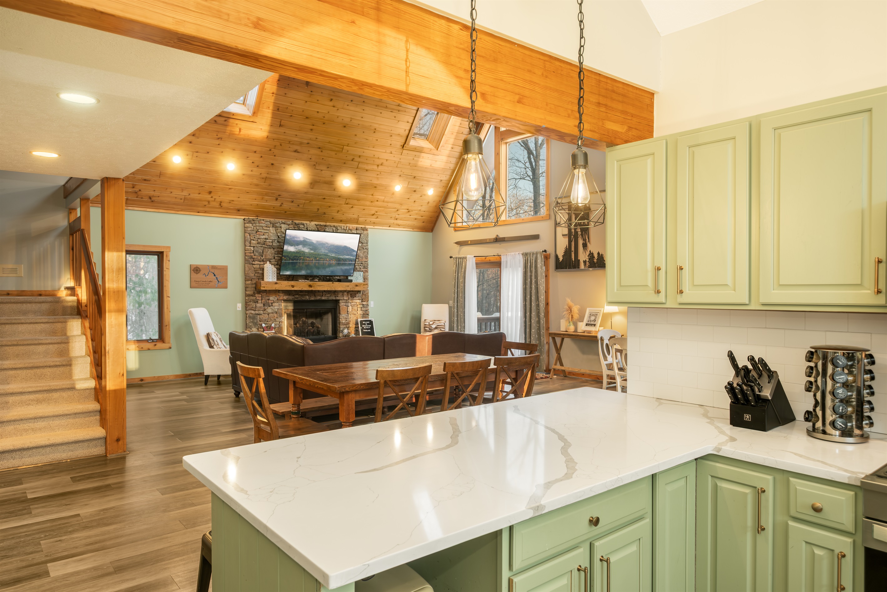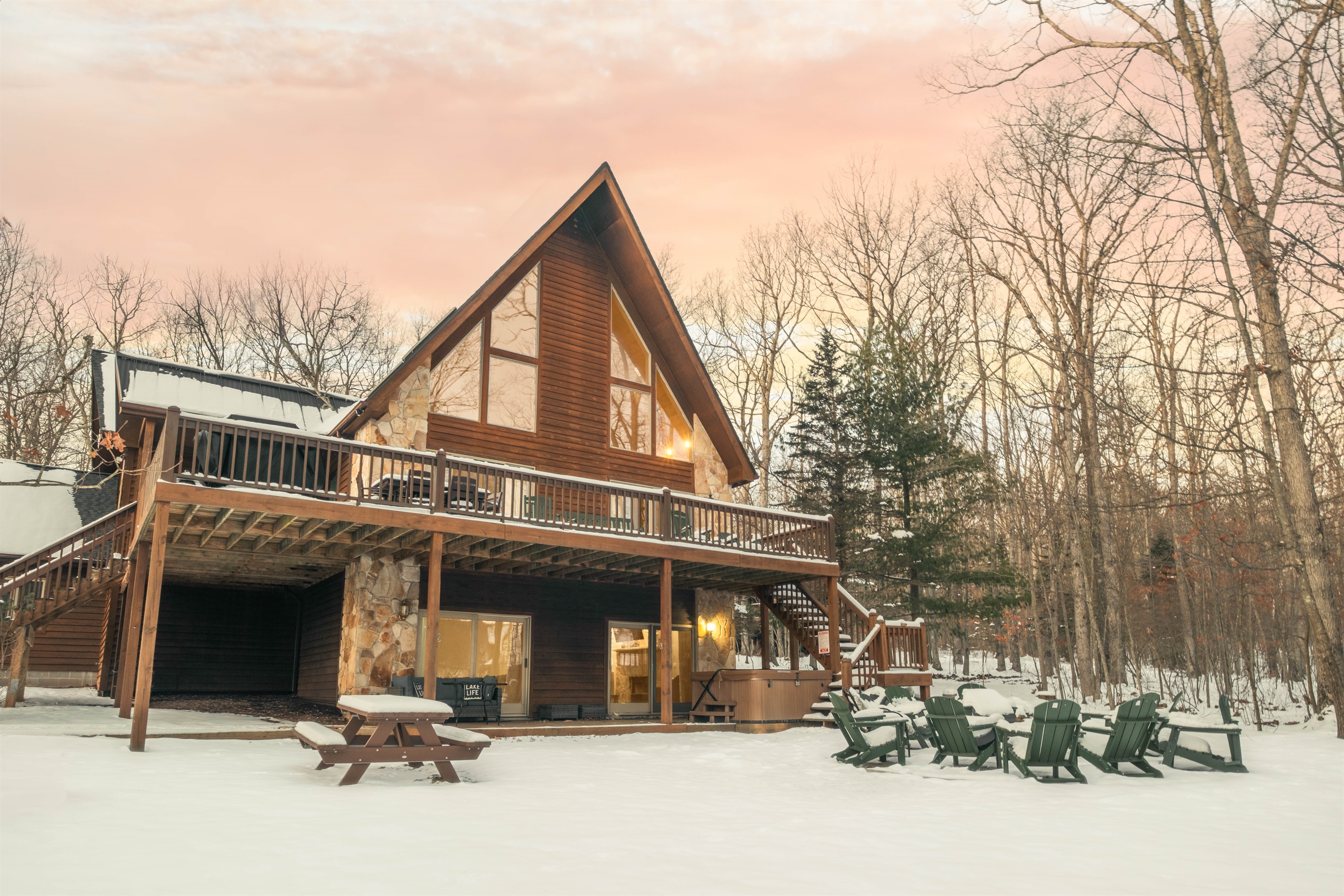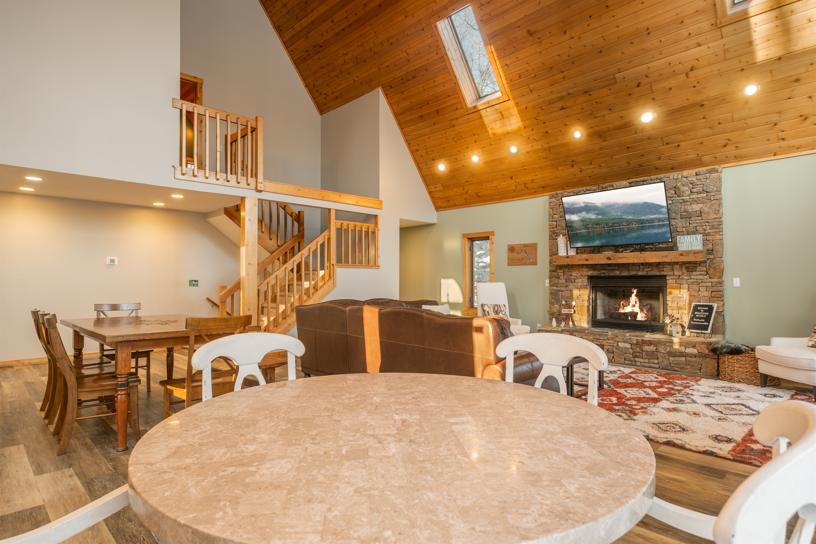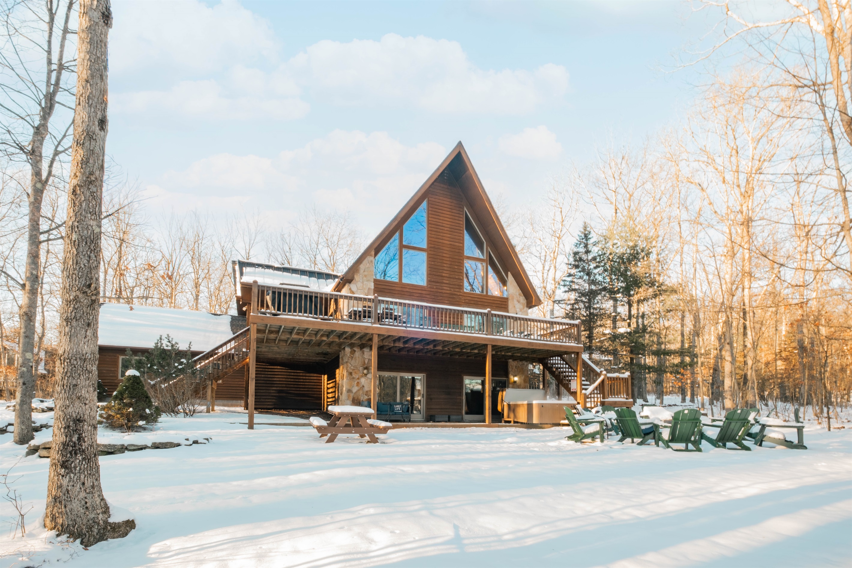 Whispering retreat is at the heart of everything that Deep Creek Lake has to offer. This cabin oasis is within a mile of WISP Resort and the golf course. Enjoy a nice hot coffee on the large deck while seeing fellow snowboarders and skiers fly down the mountain. Whispering Retreats is also within 10 minutes of the Deep Creek Lake State Park where you can enjoy many summer water activities such as swimming, canoeing, or boating. This is a year-round vacation home where you can enjoy winter sports like skiing, snowboarding, and snow tubing to enjoying summer activities like hiking, golfing, fishing, and canoeing during the spring/summer seasons. If you are looking for a place to accommodate large families and be central to all the activities Deep Creek has to offer, look no further and book your stay with us today!